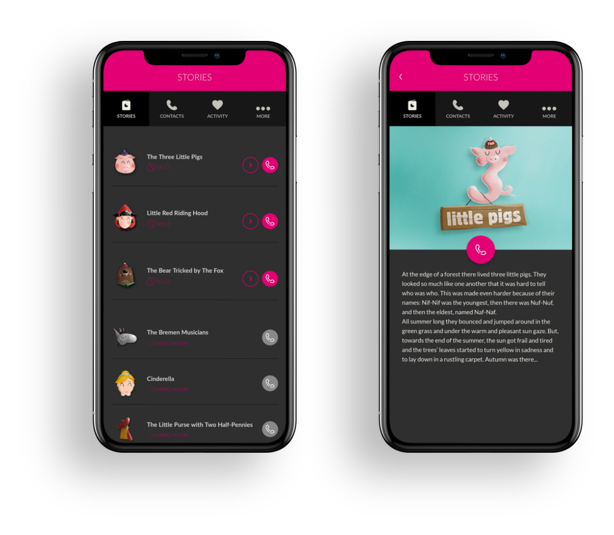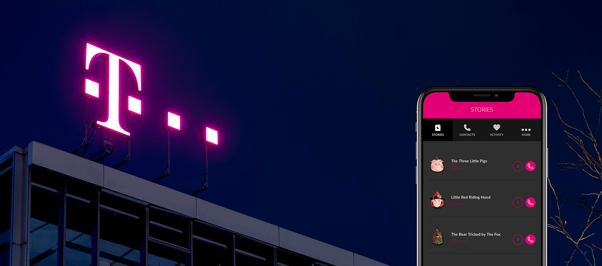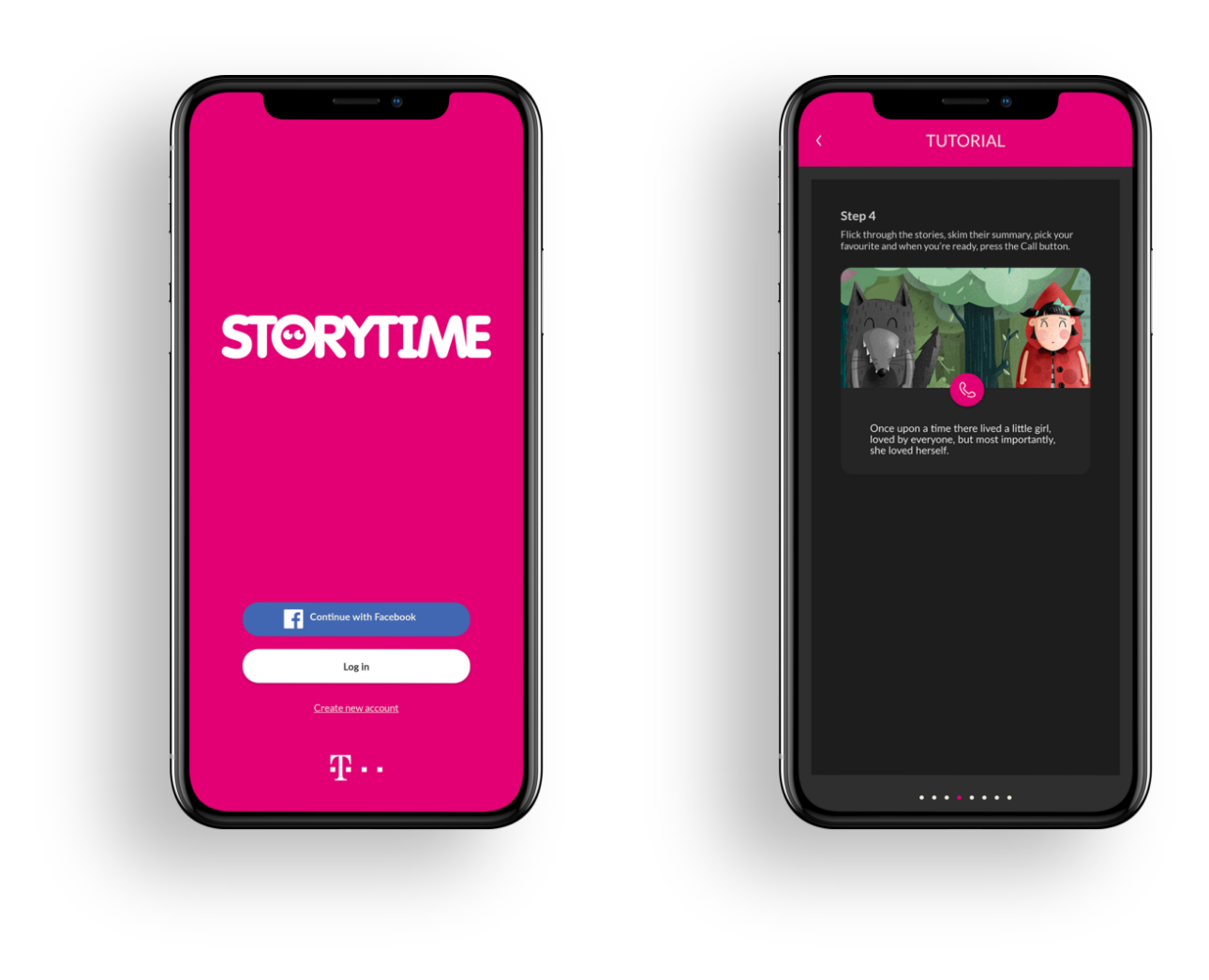 Storytime is an app we developed for European Telekom (T-Mobile) through their PR agency Leo Burnett. It’s an app through which parents who are travelling on business can still tell bedtime stories to their kids from afar. During a live video stream, the parent reads built in stories while using face filters and funny voiceovers to match the characters and keep the child entertained.